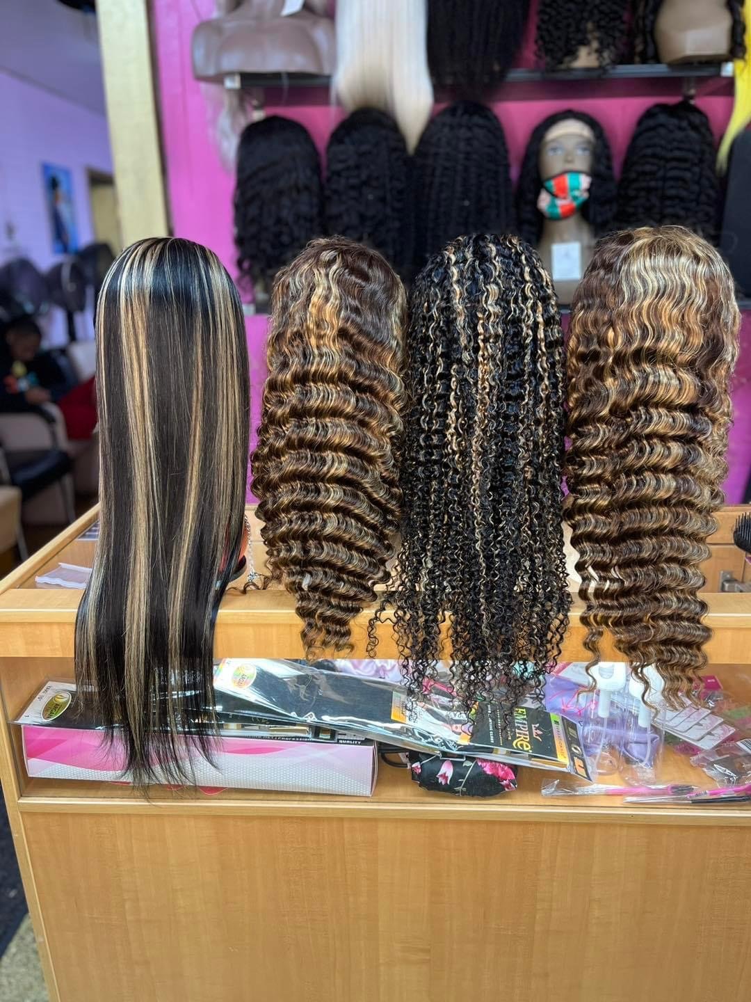 Highlighted wigs. Stop by salon to purchase. Wigs on hand.